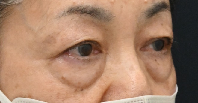 大きな膨らみのクマが目立つ60代女性のモニター様です。