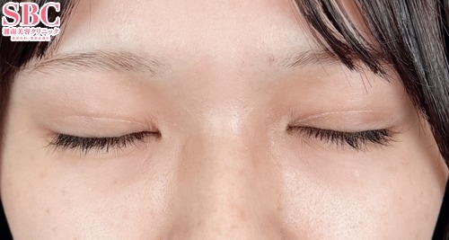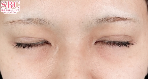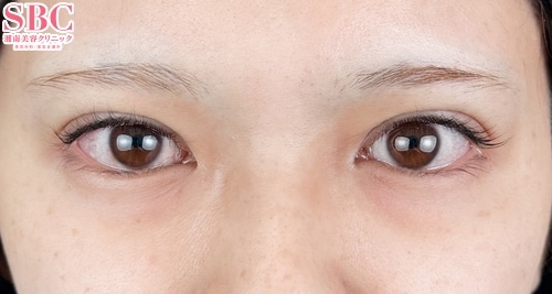 術前は右目に皺が入り、左目が奥二重と左右差があるお目元です。