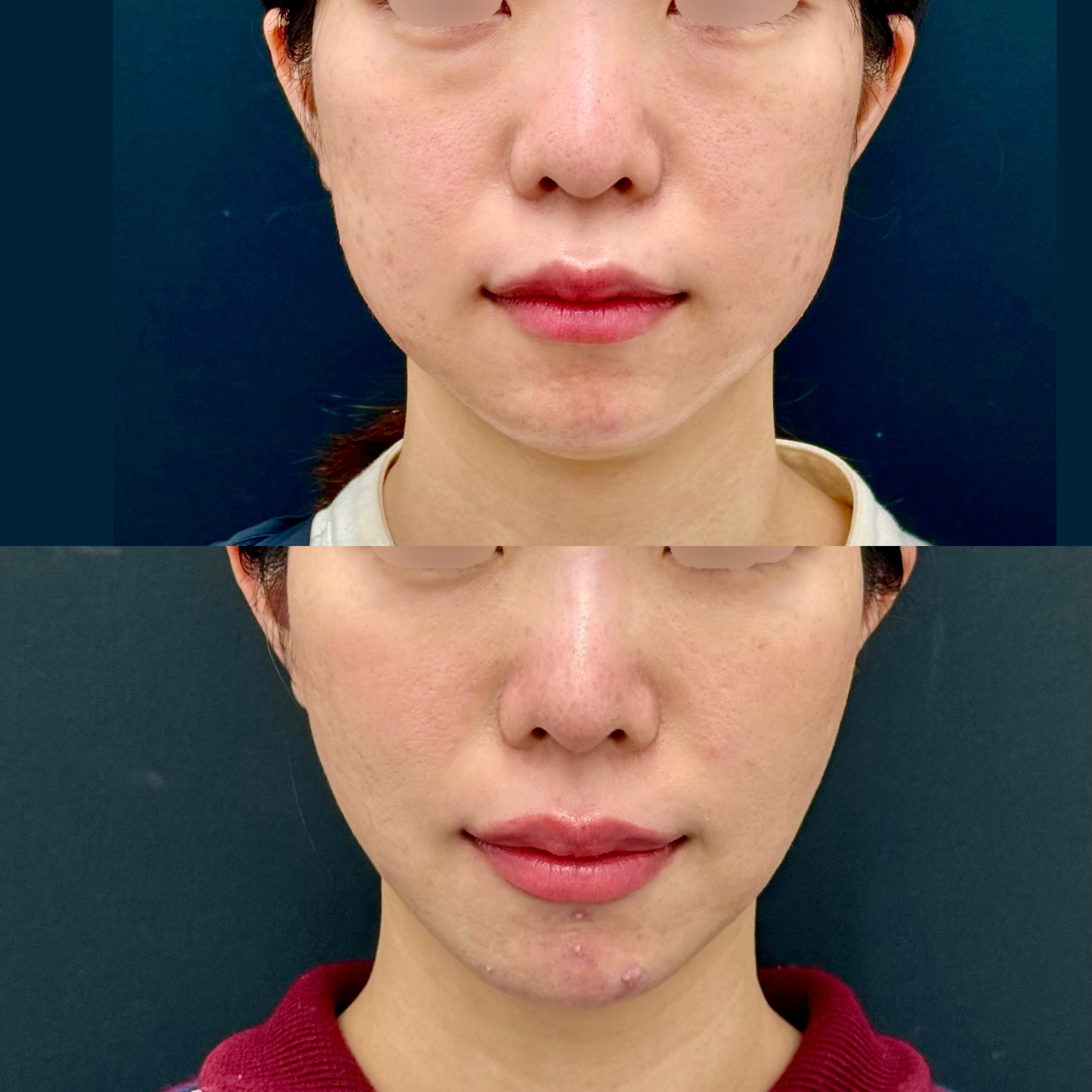 余分な脂肪は吸引し、足りないアゴ先に吸引した脂肪を注入してます。