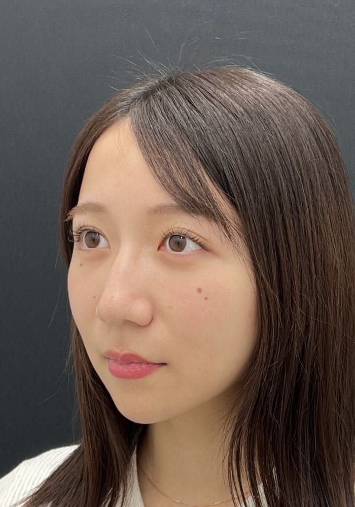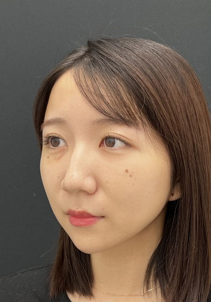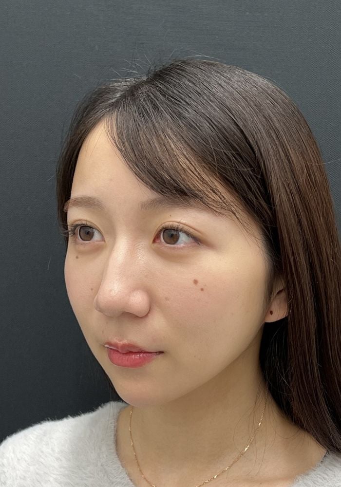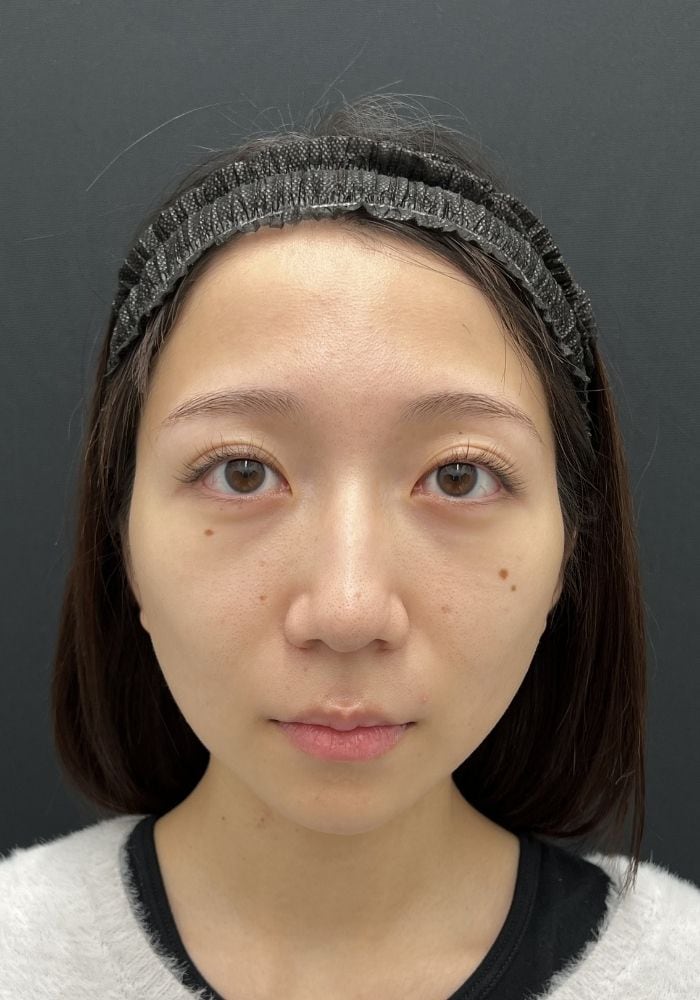 1ヶ月時点で目元もフェイスラインもとてもすっきりと見えており、脂肪注入によって重心も上がったため、お顔全体の印象がしっかりと若返っているのがお分かりいただけるかと思います。
