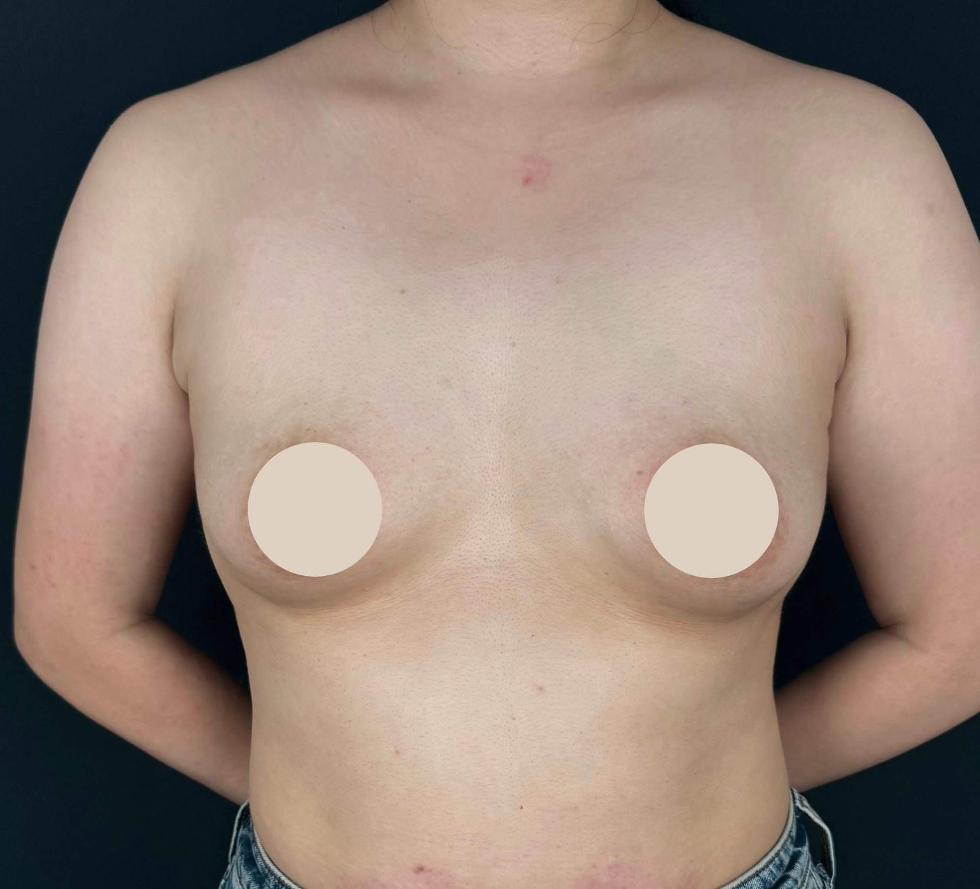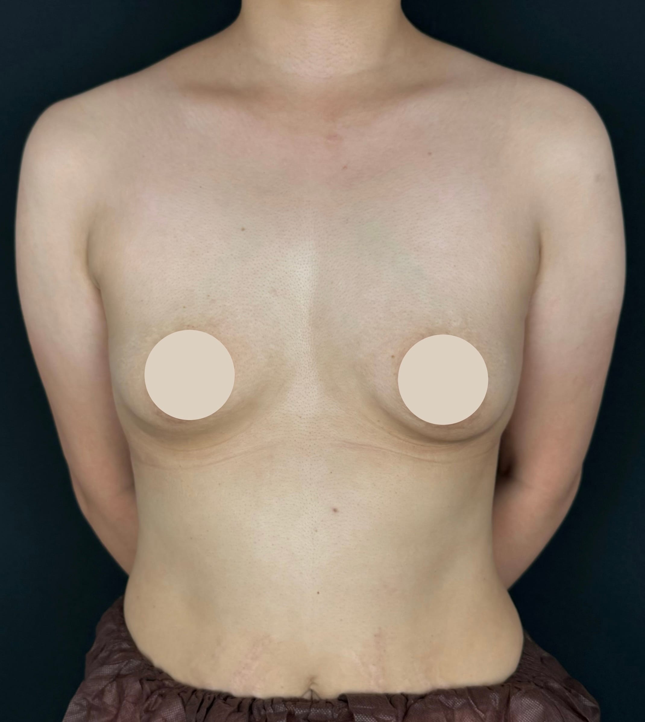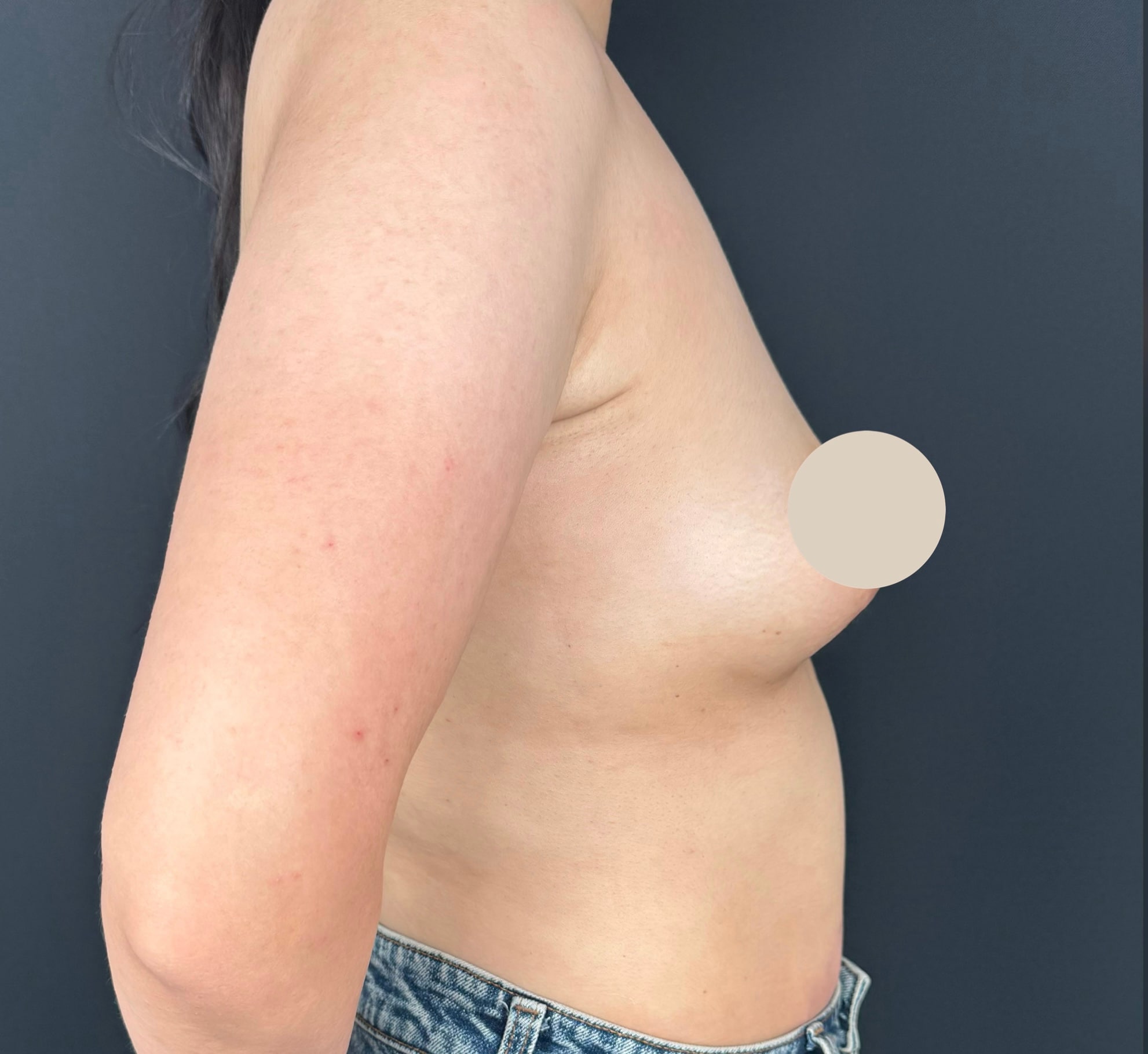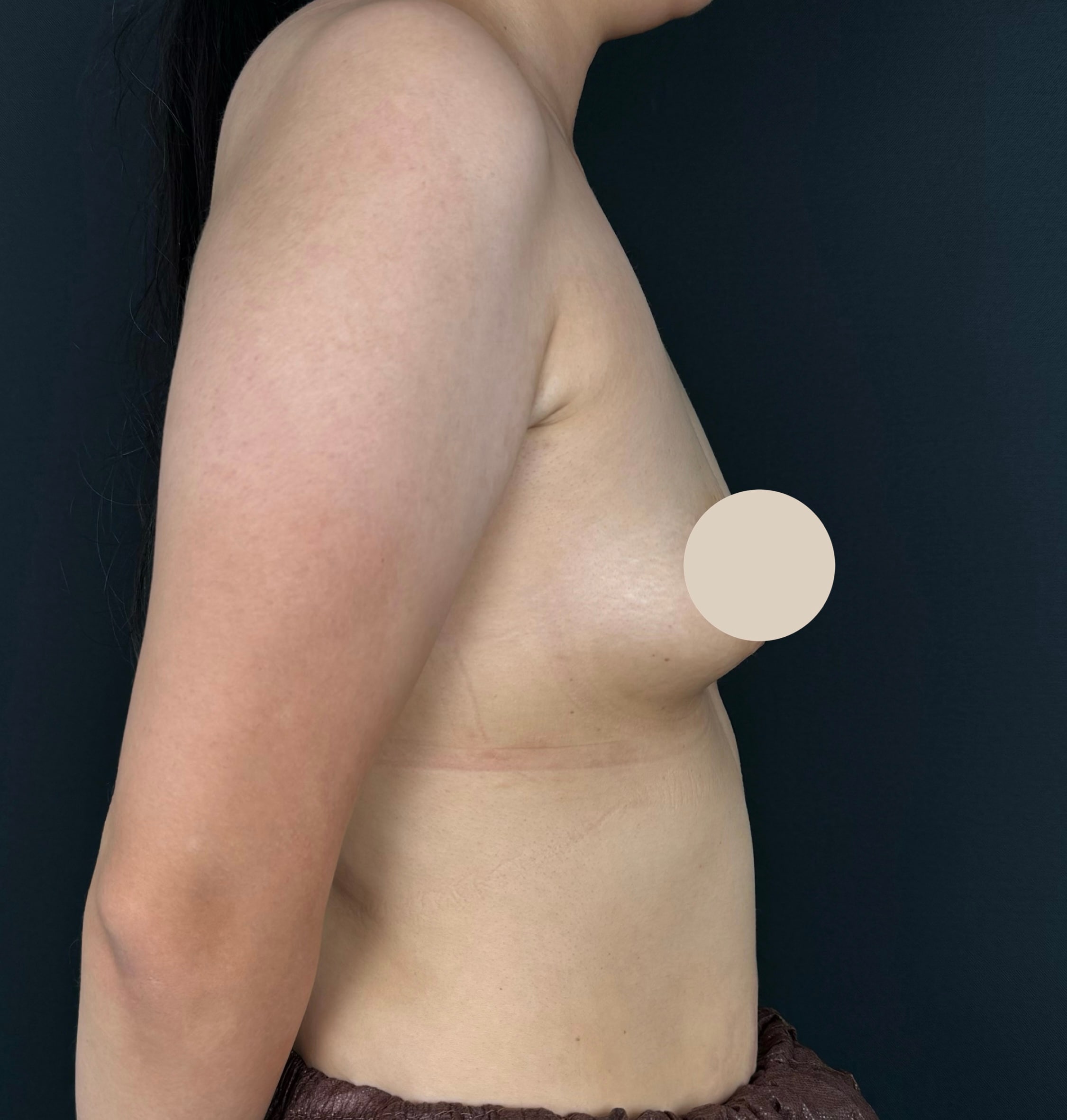 大腿後面から脂肪を採取し、お胸に注入しました。回収脂肪量が比較的多かったため、主訴である上乳をメインにボリュームアップしつつ、アンダーがしっかり出るように仕上げました。