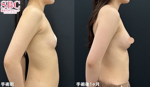 手術後は両胸ともにボリュームアップを叶えつつ、長年の悩みであった左右差も大幅に改善。理想的なバストラインとなり、大変喜んでいただくことができました。