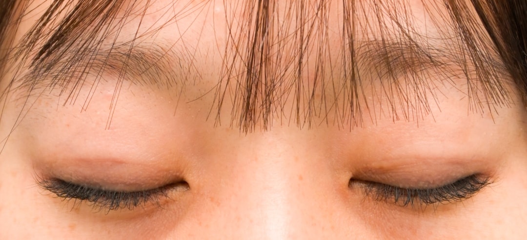 毎日アイテープや二重のりをして二重を作っていた為、幅が安定せず皮膚が伸びて線が複数できてる状態。