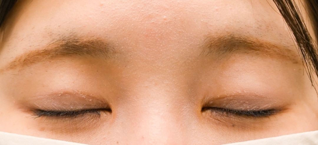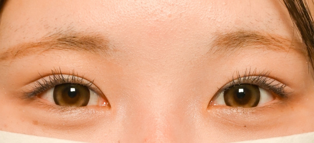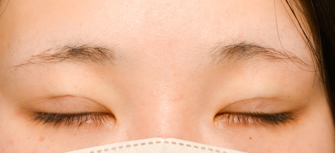 幅が狭く、目頭側の二重ラインが見えていないお目元を、