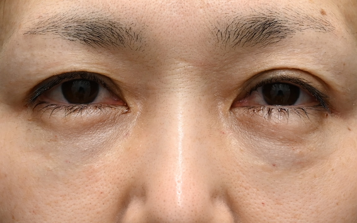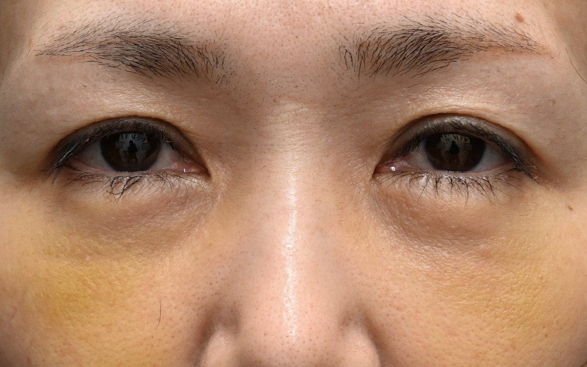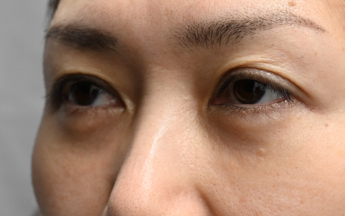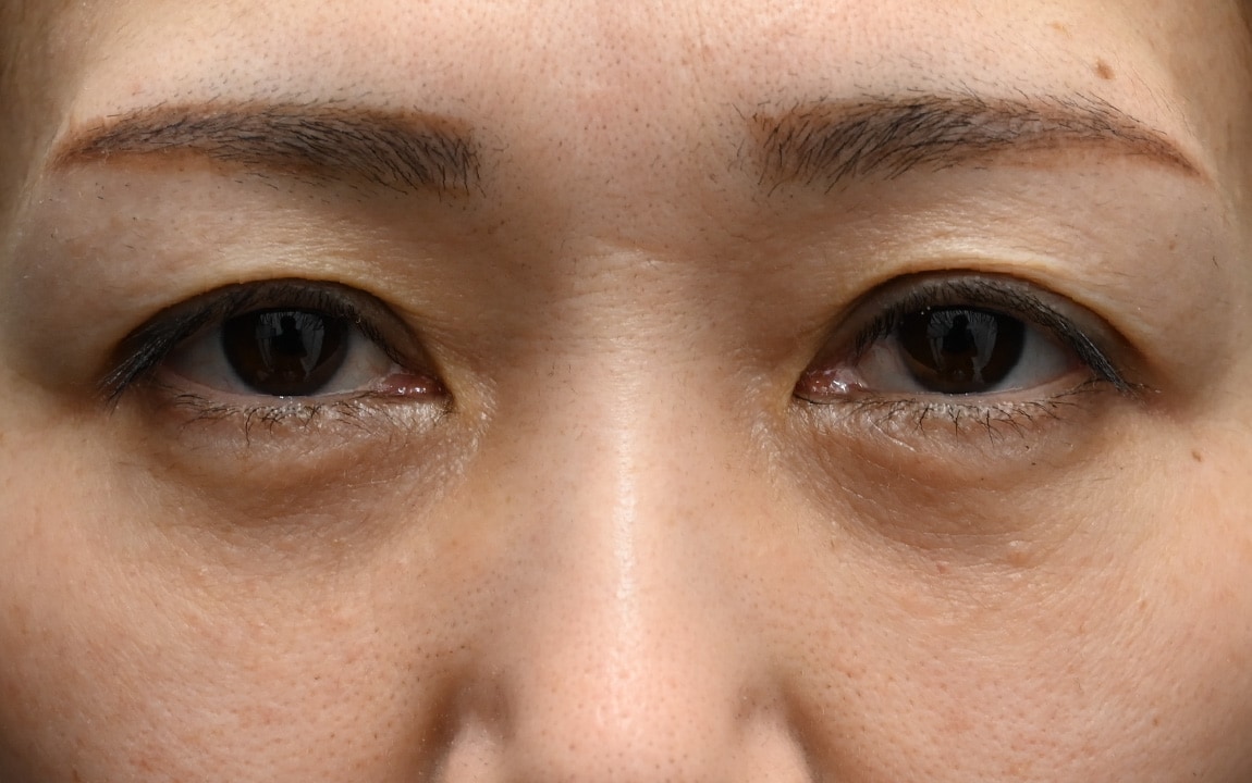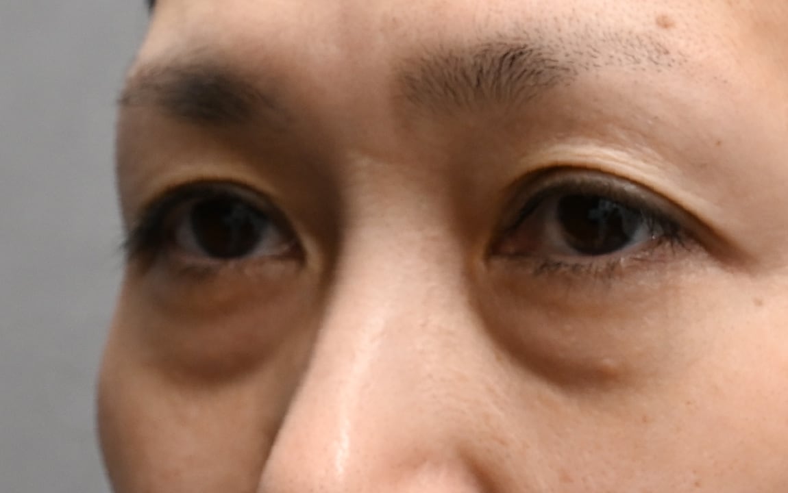 眼窩脂肪で目元の影が目立つクマをお持ちのお客様。