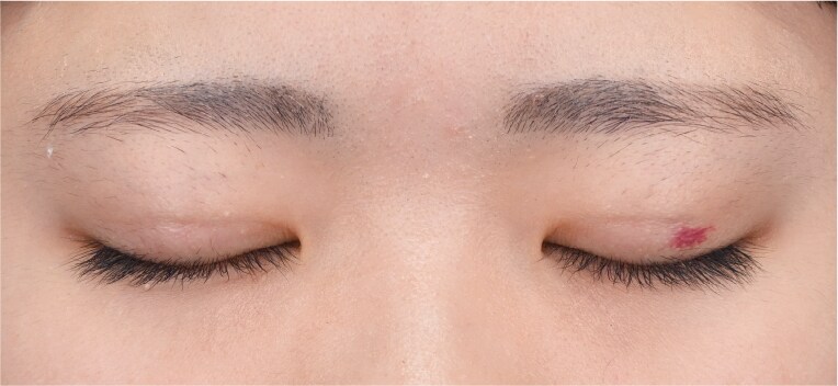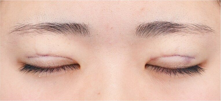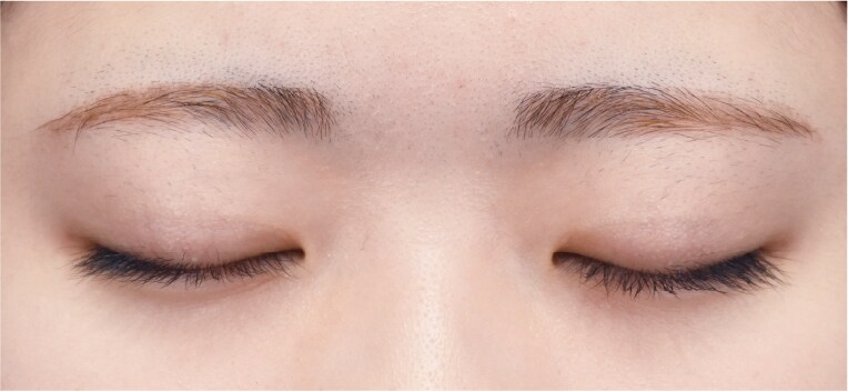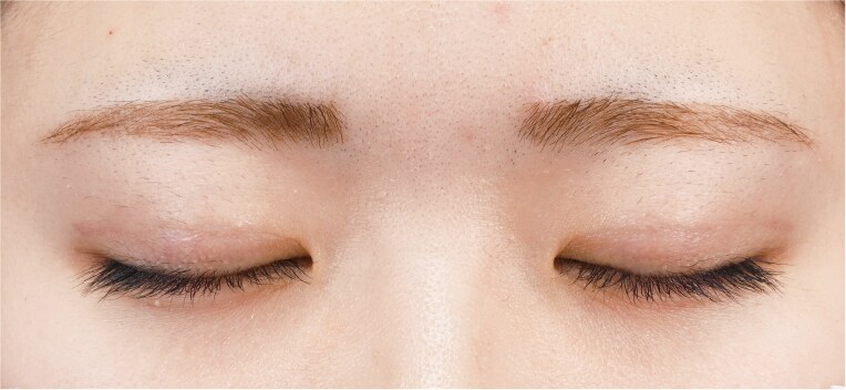 目を閉じても糸玉や傷跡がないので元々二重であったかのような自然な二重に仕上がっています。