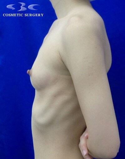 No.41051【豊胸・バストの修正】心斎橋院院長/新宿院 豊胸・脂肪吸引専門熱血Dr横谷による 魅せる脂肪注入豊胸 ベイザー併用ピュアグラフト豊胸 細い方から太もも+下腿からの脂肪採取 術後1カ月 左斜位
