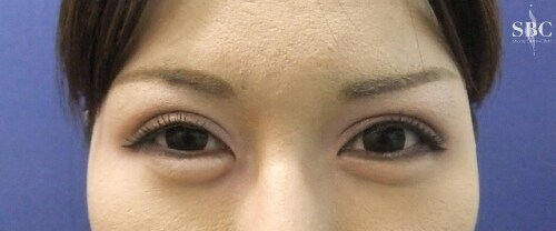 術前 他院で埋没法を繰り返すも理想通りにならないとのことでした。眼瞼下垂が重度で切開による二重形成、眼瞼下垂の修正をおすすめしました。