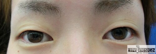処置前・・・21歳女性。かなり重い目で、自分で使うアイプチも好きな幅が作りづらくなってしまったとのことで、糸を留めて二重のクセを作る埋没法で手術することとしました。2daysクイック法の3点留めで行います◎