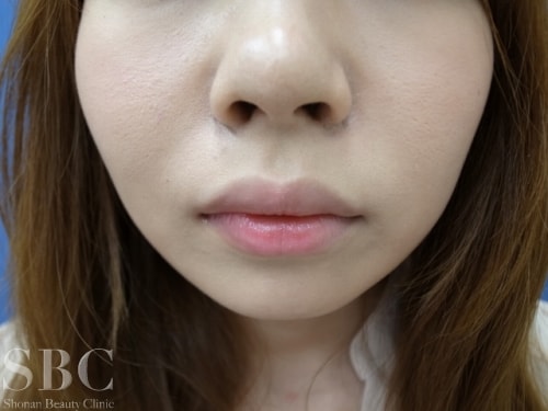 1週間後 前からですと控えめな変化ですが、確実に小さくなっています。糸を使った手軽な施術ですのでもうすでにほとんど腫れは目立ちません。