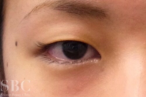 術前。やや目の開きの悪い一重です。末広型の二重を希望されました。