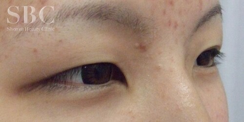 ↑20代女性、術前の斜視mmです。一重なのがコンプレックスで毎日アイプチを使っていたけれど、時間がかかってしょうがないっ!!ということで友達の勧めもあって埋没法の二重術を受けることを決心されました。