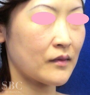 施術前、40代女性のお客様です。ホホとフェイスラインの下垂、そして左目元(向かって右側)の眼窩脂肪(影クマ)の解消をご希望されました。そこで、一気に確実な結果をもたらす施術 『3Dダイヤモンドリフト+ベイザーホホアゴ下の脂肪吸引+切らない目のしたのタルミ取り』の3施術を同日で行いました。