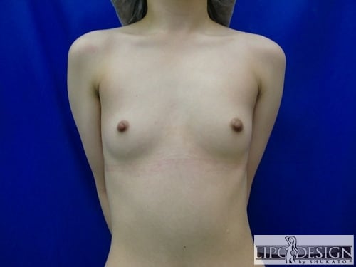 【20代】手術前・・・もともと綺麗な胸をしているのですが、もう少しボリュームが欲しいと相談に来られました。授乳歴のない方で、皮膚の厚み・張りが強く、脂肪注入量を制限されそうな症例ですが、工夫次第でなるべく多くの脂肪を注入することを狙います。少しでも大きく、形も胸として綺麗になるように手術前にしっかり時間をかけてデザインしていきます。