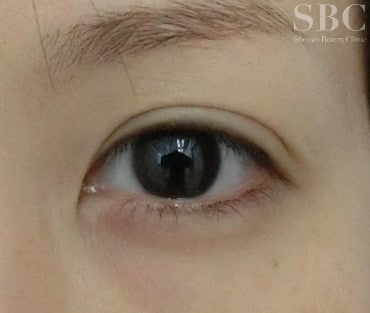 術前です。 蒙古襞がキュッと張っているのを気にされており、自然に蒙古襞のツッパリ感をなくしたとのことで、手術を希望されました。 しかし、この方は目の間の距離がもともと狭く、目頭切開によって寄り過ぎるとおかしくなってしまう可能性がありましたので、距離はそれほどよせずに、蒙古襞のツッパリ感を自然に解消する程度に調節して手術を行いました。 術後の傷跡が最も目立ちにくく、効果も自然に出しやすい、『韓流目頭切開 (杉崎流変法)』で手術を行うこととなりました。