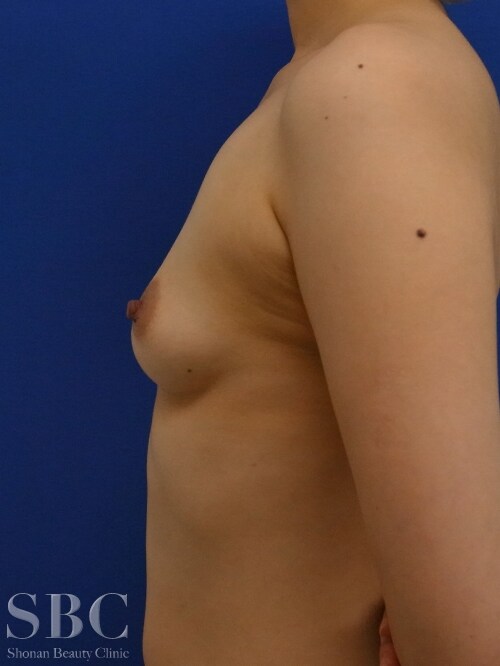 No.85029【豊胸・バストの修正】大きさだけでなく、形にも徹底的にこだわります! 細身の方でもこれだけしっかりボリュームUPしました! ピュアグラフト豊胸術(脂肪幹細胞注入法) 【術前 → 術後1か月】【左側面】