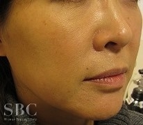 注入前。全体的なお顔のたるみが気になるということで、今回は肌再生FGFで少しずつ法令線を薄くしていくことになりました。