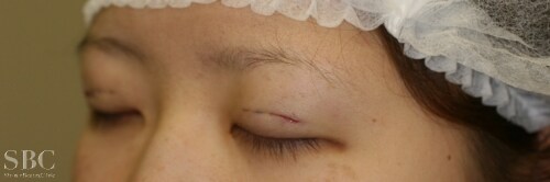 No.94044【二重・二重整形】まぶたの脂肪取りマイクロリポサクション+フォーエバー二重術【No.224】術直後 閉眼時のキズの様子