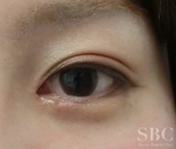 術前です。 目の間の距離が広めなのと、蒙古襞が張っているので、より自然なぱっちり平行型の二重になりたいとのことで、手術を希望されました。 まずは最も取れにくい埋没法二重術である『フォーエバー二重術』を行って二重のラインを作り、さらに目頭に蒙古襞が張っていて、目の間の距離が広めであったため、目頭切開を行いました。 術後の傷跡が最も目立ちにくく、効果も自然に出しやすい、『韓流目頭切開 (杉崎流変法)』で手術を行うこととなりました。